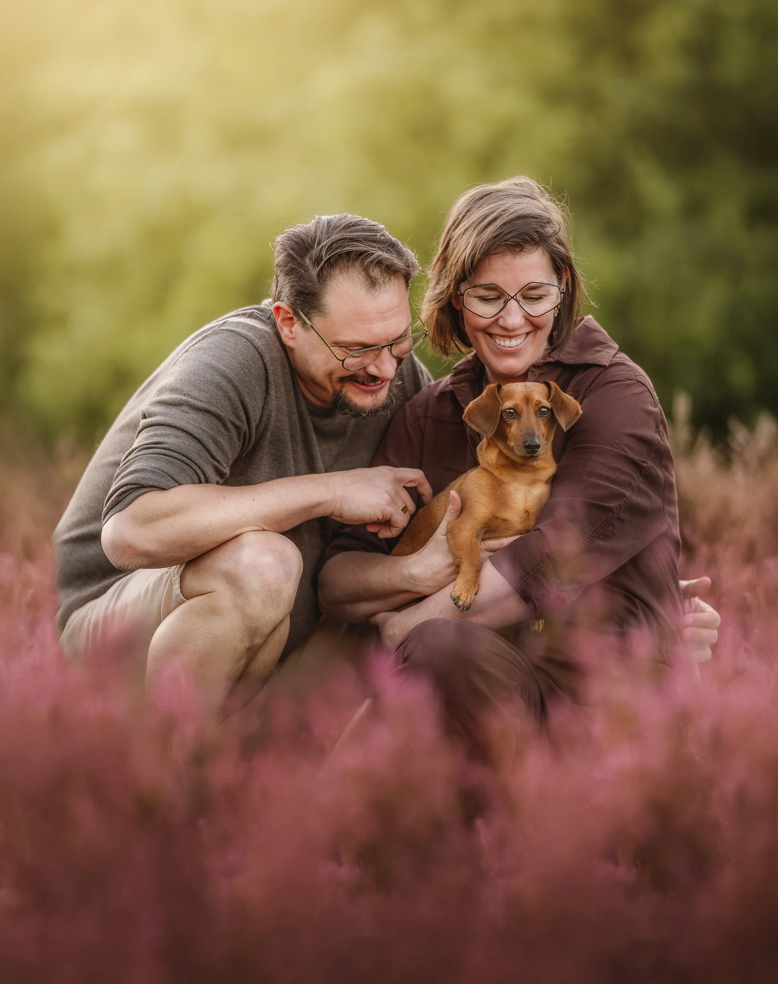 Als jij die opvallende rode jurk wilt dragen samen met je teckel, of een militaire outfit met je Duitse herder, ga er vooral voor! Het is tenslotte jouw herinnering! Ik help je graag met alles, van locatie tot styling, zodat jij alleen maar hoeft te genieten van het moment met je hond.