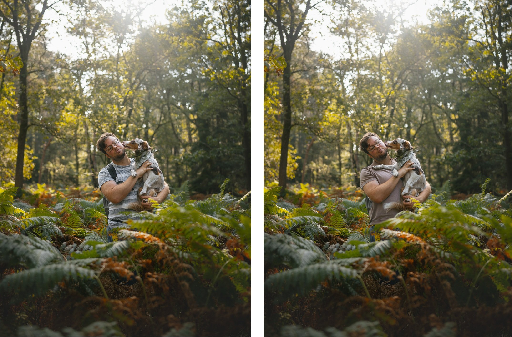 Gedempte en aardse kleuren kunnen op het eerste gezicht wat saai lijken, maar zijn absoluut de beste keuze voor de meeste foto’s met je hond. Laten we eens kijken naar een paar voorbeelden van kleurencombinaties die goed werken: